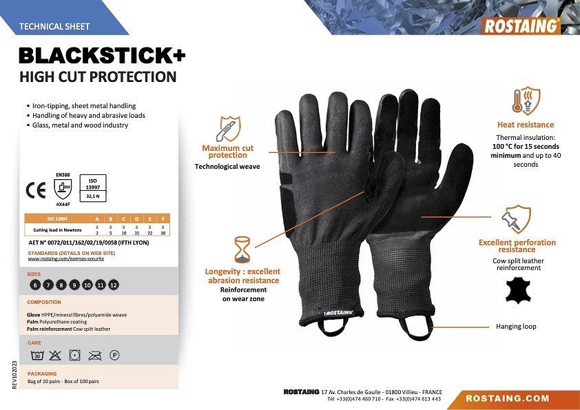 BLACKSTICK+ Vágásbiztos kesztyű megerősített bőr résszel 8