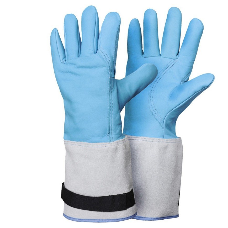 Bőrkesztyű kriogén anyagok kezelésére Kriogén kezelés az iparban, gyógyszeriparban, vegyiparban, laboratóriumokban Ipari szárazjég-fúvás Kriogén hideggel szembeni ellenállás - összetétele ellenálló a kriogén folyadékok véletlenszerű fröccsenésével szemben -196 C-ig Vízálló - vízlepergető bőr - nem keményedik meg, ha megszárad Mandszsetta hossza: 150 mm Optimalizált élettartam - Megerősítés a a kopási zónában Hőszigetelés: 500 °C min. 15 másodpercig
