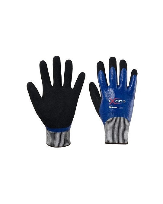 Varrat nélküli kötött (13g) vágásálló kesztyű. Dupla nitril bevonat (sima/kék+homokos/fekete). Vízhatlan és nagy teljesítményű. Biztos fogás olaj, zsír, kenőanyagok jelenlétében.