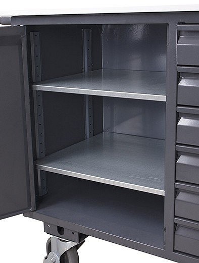 Méret: 1110 x 600 x 960 mm Rakfelület mérete: 1000 x 600 mm Teherbírás: 400 kg Kerék átmérője: 160 x 40 mm Easy STOP rendszerrel RAL 7035 Világosszürke 10 év garanciával Ingyenes szállítással