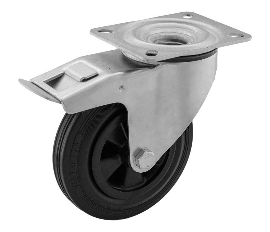 Forgó - fékes műanyagfelnis tömörgumis kerék 125 mm