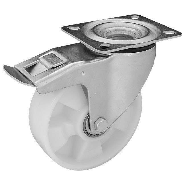 Kerék típus: Forgó - fékes Külső átmérő: 160 mm Tengelyfurat átmérő: 20 mm Teherbírás: 720 kg Tengelyhossz: 60 mm Keréknyom szélesség: 50 mm Csapágy típus: Golyóscsapágy Gumiabroncs anyaga: Poliamid Magasság: 215 mm Rögzítés típusa: Lemezrögzítés Lemez méret: 135 mm x 110 mm Furat távolság: 105 mm x 80 mm Rögzítőfurat szélesség: 11 mm Gyártó: RADER