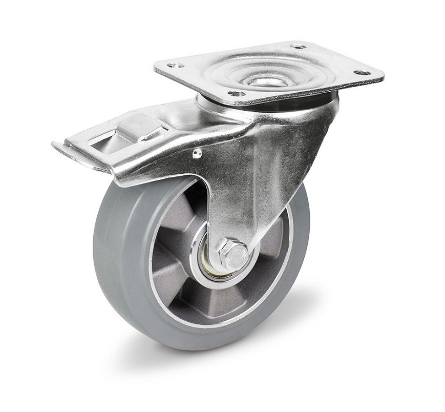 Forgó - fékes Szürke gumis nyommentes kerék 160 mm