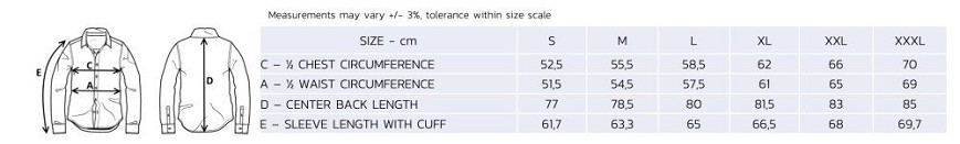 Középső gombos ing, hosszú ujjú, gombokkal záródó mandzsettával. Két gombokkal zárható mellzsebbel.
