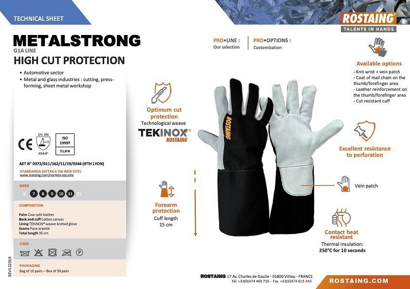 Hosszúszárú védőkesztyű Autóipari ágazat Fém- és üvegipar: vágás, préselés, lemezműhely Optimális vágásvédelem Alkarvédelem: Mandzsetta hossza 150 mm Kiváló perforációval szembeni ellenállás Elérhető funckiók: -Csukló + vénás tapasz -Középlánc a hüvelykujj/ujjbegy területén -Bőr megerősítés a hüvelykujj/ujjbegy területén Vágásálló mandzsetta Éintkezési hőállóság: Hőszigetelés: 250 °C min. 10 másodpercig