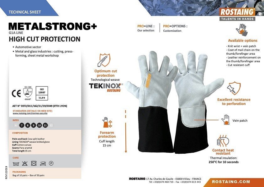 Hosszúszárú védőkesztyű Éintkezési hőállóság: Hőszigetelés: 250 °C min. 10 másodpercig Autóipari ágazat Fém- és üvegipar: vágás, préselés, lemezműhely Optimális vágásvédelem Alkarvédelem: Mandzsetta hossza 150 mm Kiváló perforációval szembeni ellenállás Elérhető funckiók: -Csukló + vénás tapasz -Középlánc a hüvelykujj/ujjbegy területén -Bőr megerősítés a hüvelykujj/ujjbegy területén Vágásálló mandzsetta
