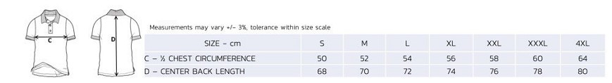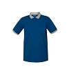 Rövid ujjú pólóing belső pánttal, kontrasztos színű, két gombbal záródó gallérral, bordázott karimák kontrasztos színű kontúrral, alul oldalsó hasítékok kontrasztos színű betéttel.