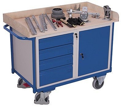 Műhelykocsi 1 rakfelülettel- 4 db záható fiókkal és tárolóval