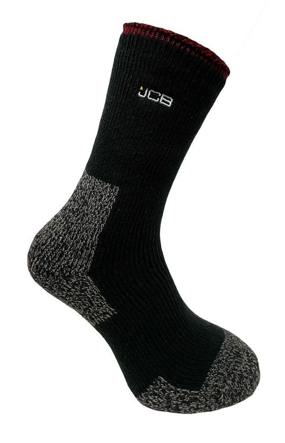 Ez az egy pár Thermasock munkás zokni hőmegtartó Thermasock technológiával készült. Kefélt, hőt megőrző belső rétege extra melegséget biztosít, míg a tartós anyag kényelmes párnázottságot nyújt. A légáteresztő, nedvességet elvezető talpbetét, valamint a megerősített achillesz, sarok és lábujjak növelik a tartósságot. Az elegáns JCB logó hímzése és a REACTIVE fonaltechnológia fokozza a komfortot. Anyagösszetétel: 85% akril, 9% poliészter, 5% polipropilén, 1% elasztán.