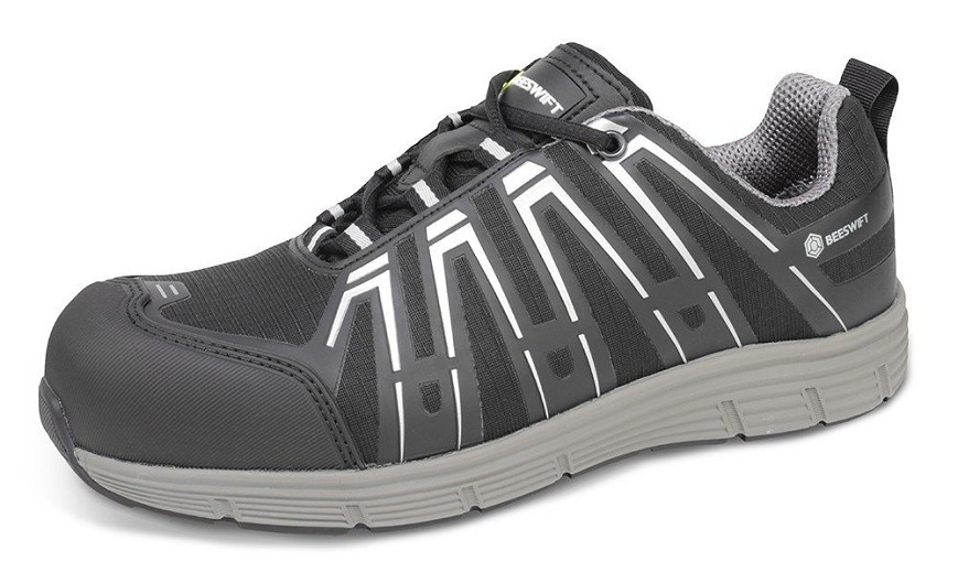 Ez a munkavédelmi cipő fekete akció mesh felsőrészével és szürke/ezüst csíkjaival modern megjelenést biztosít. A szürke EVA és fekete gumi talp vízálló és tartós. A három szövet lace loop és egy műanyag szem az erős rögzítést biztosítja, míg a kényelmes talpbetét fokozza a komfortot. Fémmentes kialakítása kompozit orrmerevítővel és megerősített középtalppal védi a lábat, megfelel az EN ISO 20345:2011 S3 SRC szabványnak.