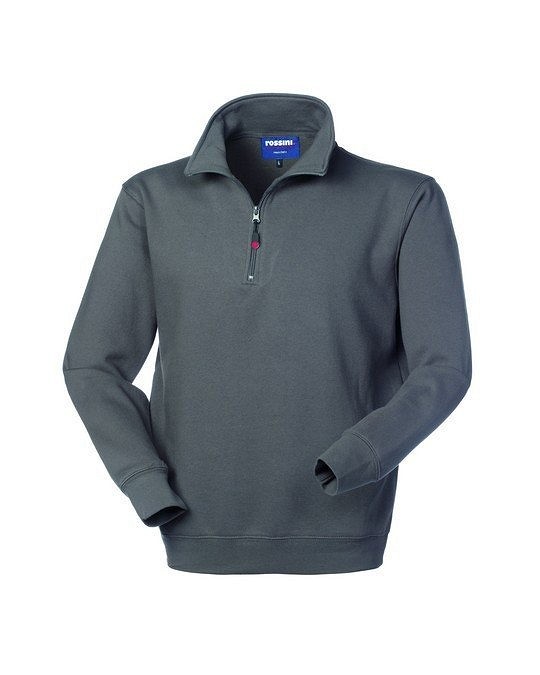 Magas gallérú, rövid műanyag cipzárral záródó pulóver, a galléron belül pánt, rugalmas kötött mandzsetta és derékpánt.