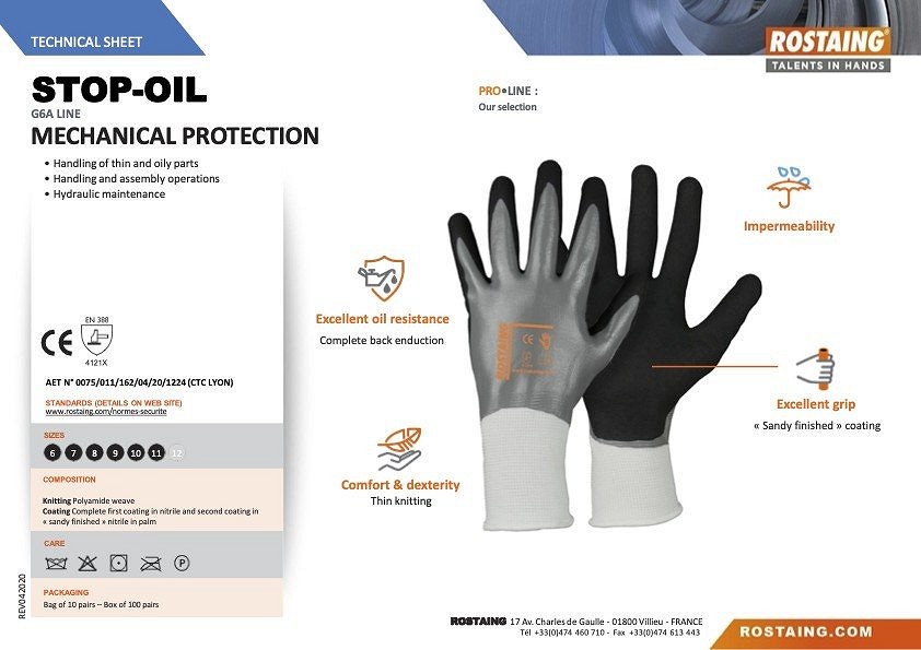 Olajálló szerelőkesztyű MECHANIKAI VÉDELEM Vékony és olajos alkatrészek kezelése Kezelési és összeszerelési műveletek Hidraulikus karbantartás Kiváló olajállóság Kiváló tapadás Kényelem és kézügyesség: Vékony kötés