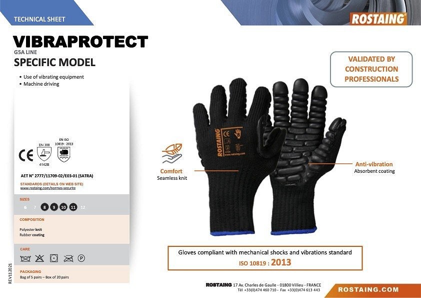 Munkavédelmi kesztyű Vibráló berendezések használata Gépek vezetése Rezgéscsillapítás: Abszorbens bevonat Kényelem: Varrat nélküli kötés A kesztyű megfelel a mechanikai ütések és rezgések szabványának
