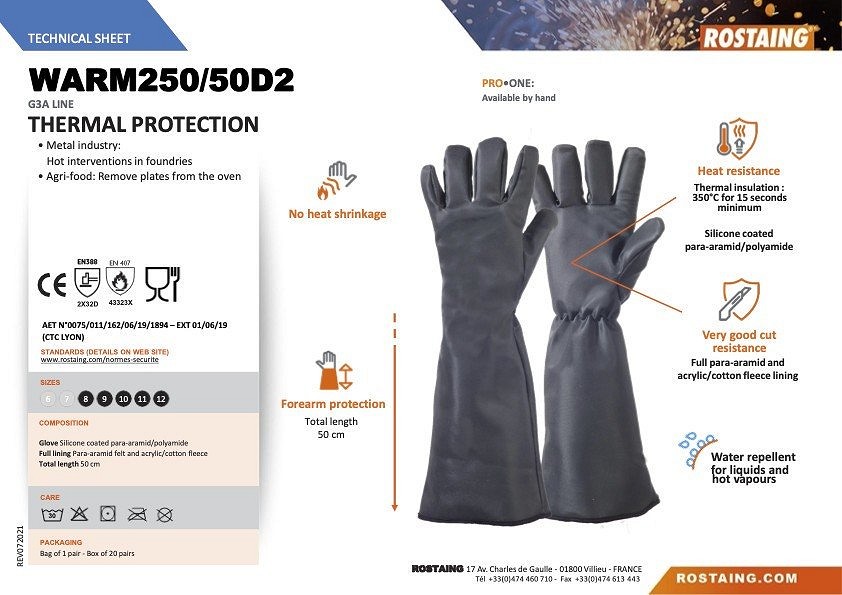 Hőálló élelmiszeripari kesztyű Hővédelem Fémipar: forró beavatkozások öntödékben Mezőgazdasági-élelmiszeripar: tányérok kivétele a sütőből Nincs hőzsugorodás Kiterjesztett védelem: teljes hossz 500 mm Szilíciummal bevont para-aramid/poliamid Nagyon jó vágásállóság Vízlepergető a folyadékok és forró gőzökkel szemben rHőállóság: Hőszigetelés: 350 °C min. 15 másodpercig